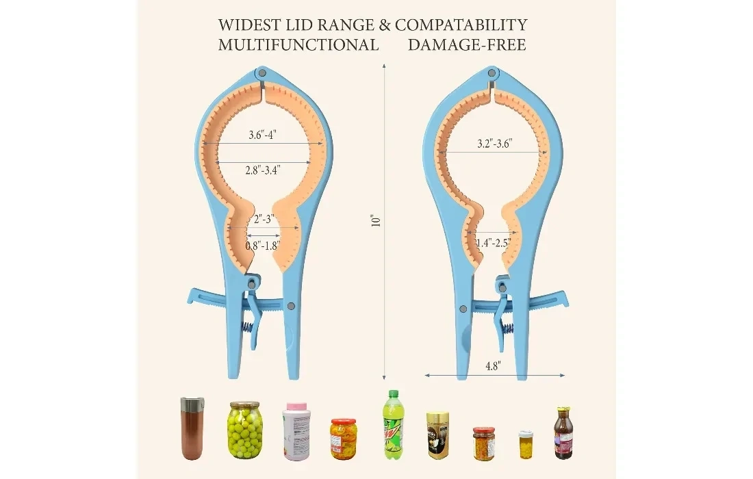 ✔ Wide lid compatibility – Opens everything from tiny bottles (0.8”) to extra large jars (4”).